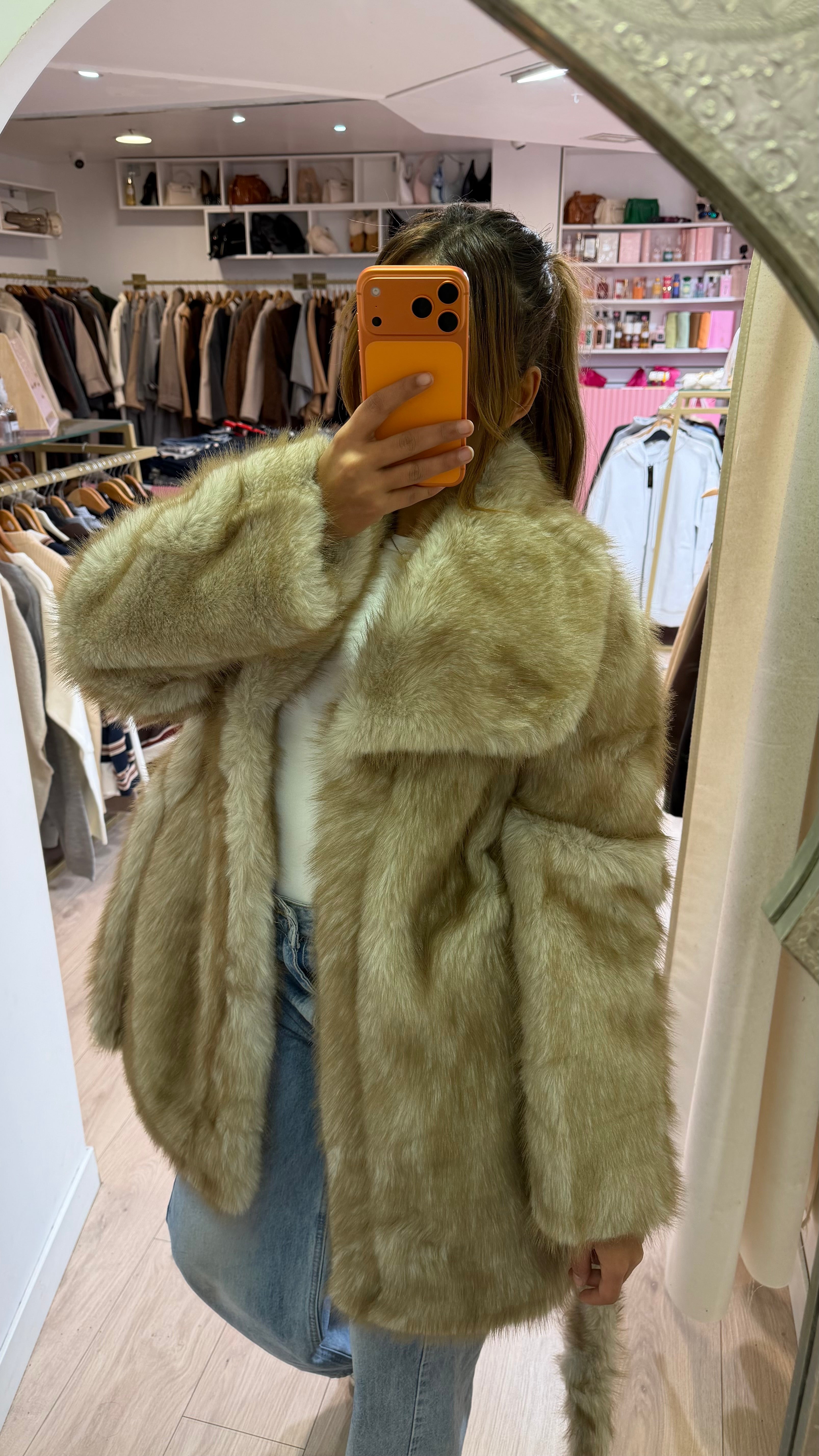 Chic, doux et luxueux — ce manteau ceinturé en fausse fourrure couleur chocolat est la pièce parfaite pour un look élégant et chaleureux.