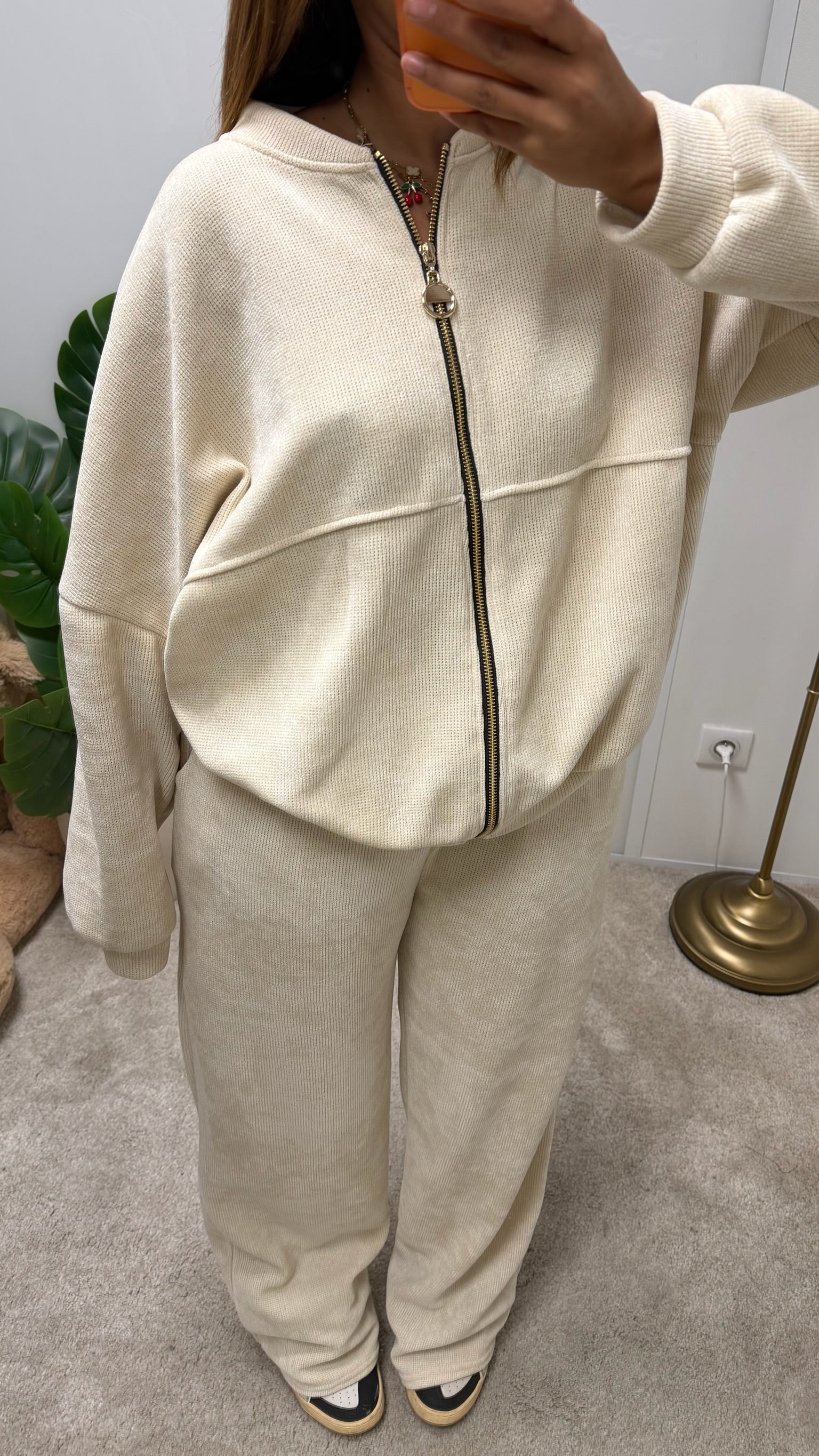 Porte ton ensemble Keira avec une paire de sneakers blanches pour un look chill & classy, ou opte pour des bottines beiges et un trench long pour une allure plus raffinée.