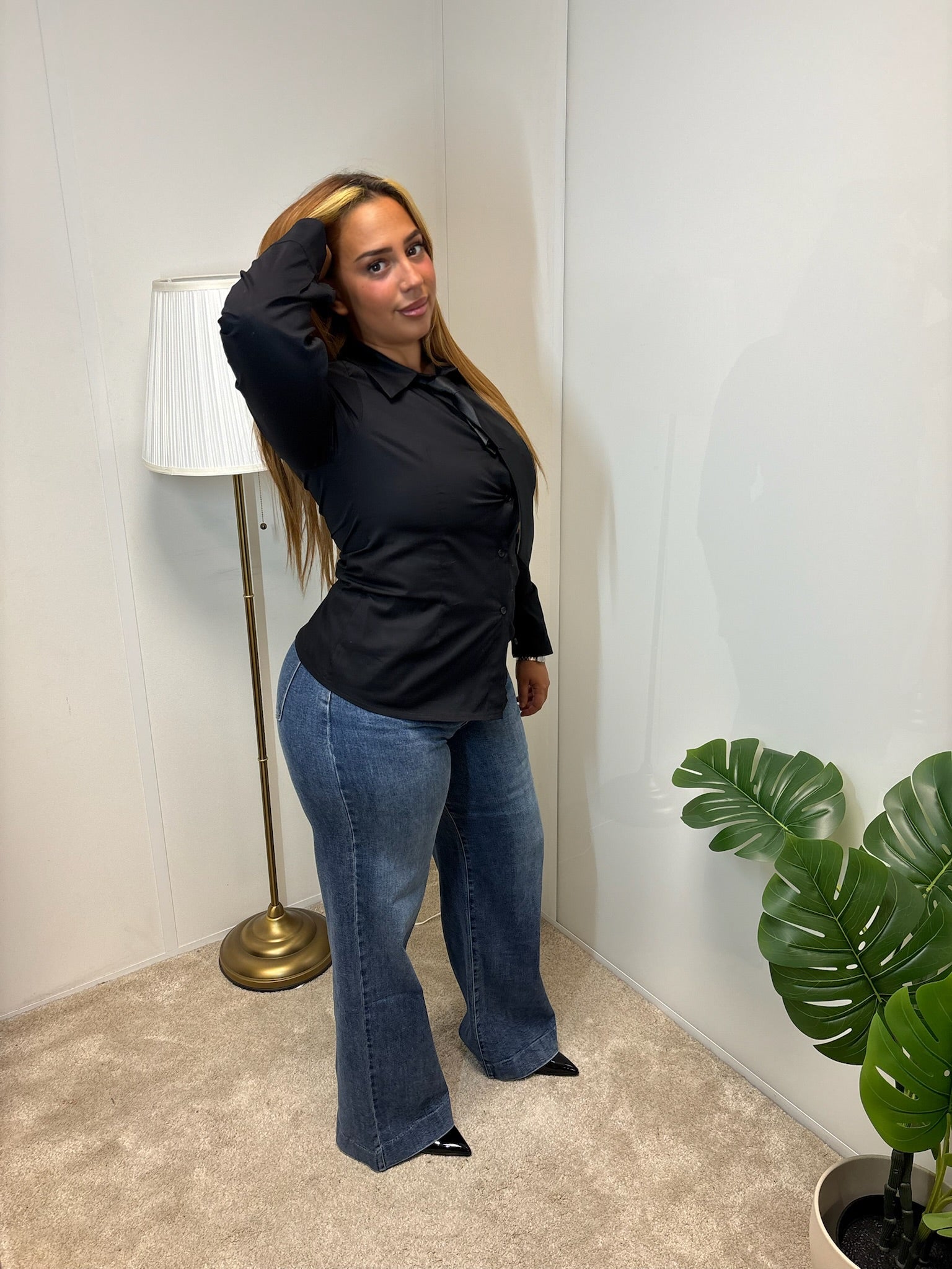 Pour un look moderne et tendance, porte-la légèrement ouverte ou noue-la à la taille. Avec un jean coupe droite ou évasée, l’ensemble devient tout de suite stylé et structuré ✨
