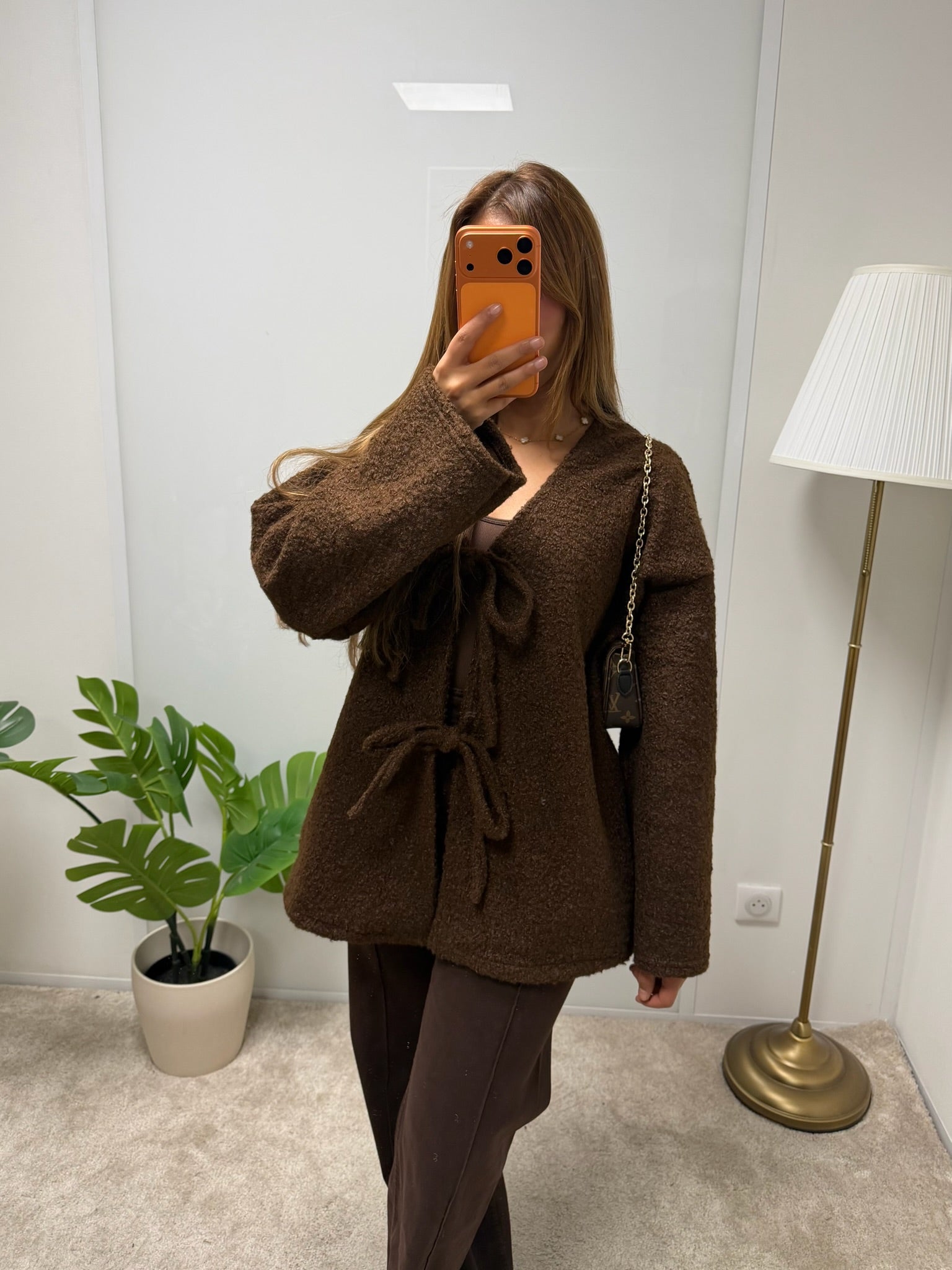 • Fermeture par nœuds sur le devant, détail original et féminin