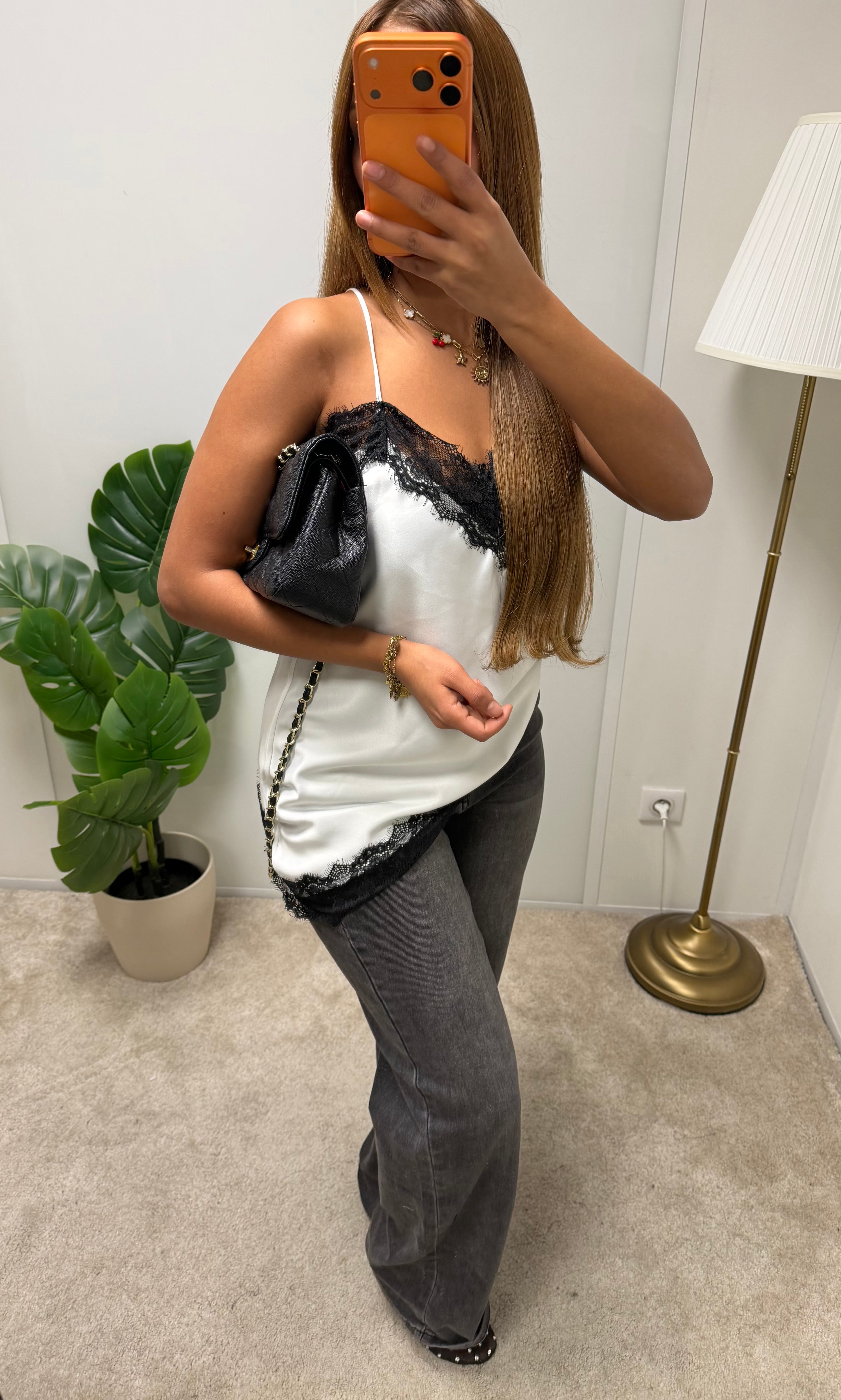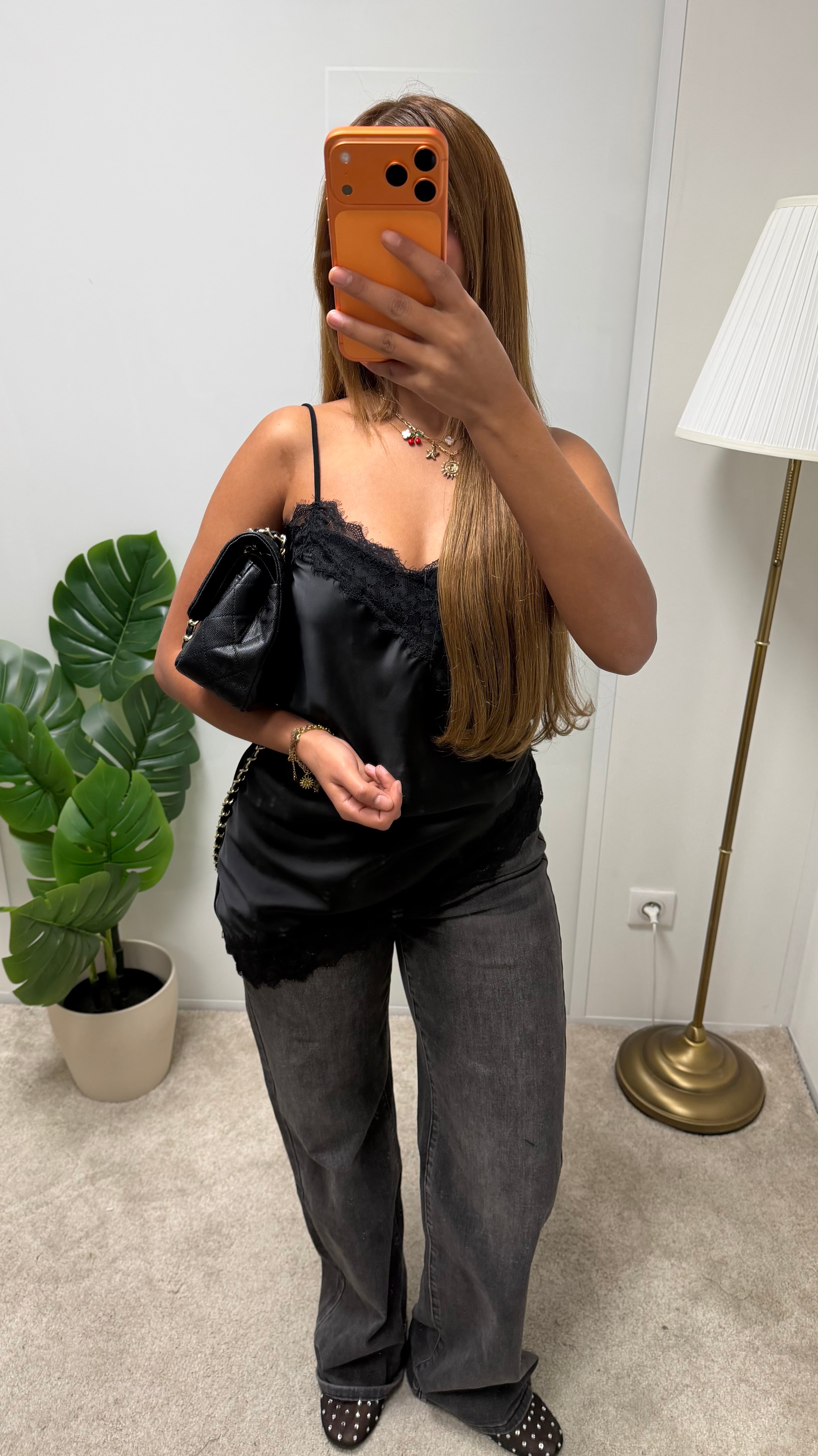 Élégant et intemporel, ce top satiné noir est la pièce parfaite pour un look à la fois chic et féminin.