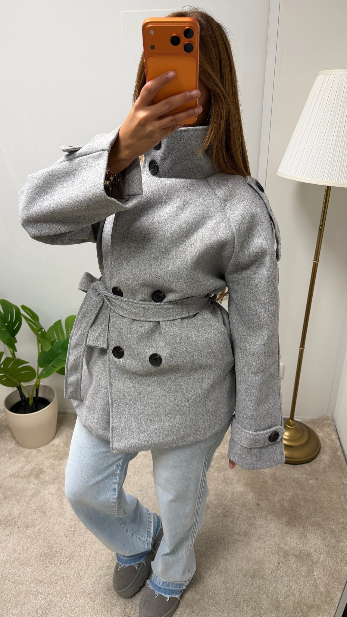 - Fermeture : croisée à double boutonnage sur le devant, apportant une allure sophistiquée et rappelant la coupe classique du trench.